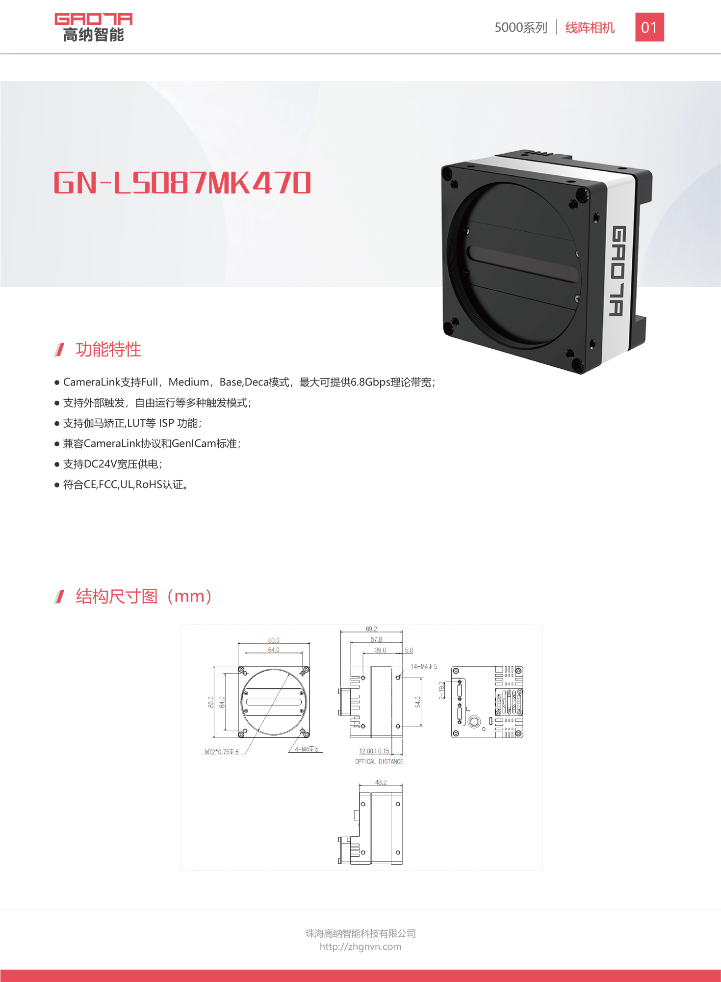 ● 兼容CameraLink协议和GenICam标准;